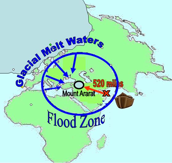 When the flood waters finally receded, according to Genesis 8:4, the Ark came to rest on the mountains of Ararat in Eastern Turkey - 520 miles northwest from where it was constructed by Noah and his family.